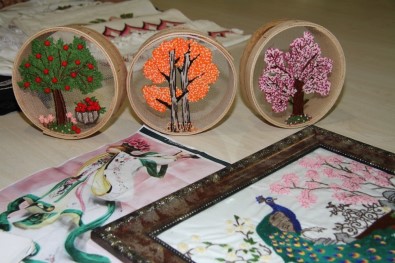 Kursta öncelikle evlerde bulunan malzemeleri değerlendirdiklerini belirten Akça, “Kursumuzda tel, ip, kumaş parçaları gibi özellikle evde bulunan malzemeleri değerlendiriyoruz. Genelde işlerimizin daha hoş görünmesi ve uzun ömürlü olması için ipek kurdele kullanmayı tercih ediyoruz. El emeği, masa örtüleri, yatak örtüleri, seccade ve bohça takımları, kına setleri aklınıza gelebilecek her şeyi burada üretiyoruz. Özellikle çok moda olan çanta ve takılarımız var. Hem göze hitap ediyor hem de kadınlar için çok kullanışlı. Ayrıca kursiyerlerimiz üretilen ürünleri belediyemizin açtığı sergilerde veya bireysel olarak satışa sunarak gelir elde edebiliyor” diye konuştu.