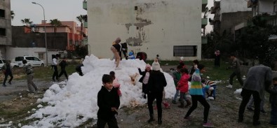 Mahalleye götürülen karlar, çocukların yanı sıra ailelerinin de eğlencesi oldu. Ekiplerin mahalleye yığdığı karın oluşturduğu tepenin üzerine çıkan çocuklar, doyasıya eğlenirken, aileler de çocukların eğlencesine ortak oldu.