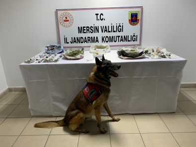 İçel’in Tarsus ilçesinde jandarma ekipleri, bir iş yerinde narkotik dedektör köpekleri ’Çaylak’ ve ’Dünya’nın da katıldığı aramada 1 kilo 650 gram kubar esrar, bir gram metamfetamin ile 5 adet uyuşturucu madde içiminde kullanılan aparat ele geçirdi.