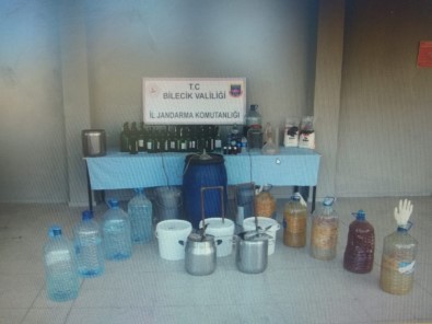 Alınan bilgilere göre; Bilecik İl Jandarma Komutanlığı ekiplerince yapılan istihbarı çalışmalar neticesinde, 4 şüpheli şahsın Bilecik genelinde kaçak alkollü içki imal ve ticaretini yaptıkları tespit etti. Adli makamlardan alınan arama ve el koyma kararına sonrası Bilecik merkeze bağlı Kurtköy ve Küplü köyleri ile Orhangazi mahallesinde bulunan 4 ayrı adreste arama faaliyeti icra edilmiştir. Yapılan aramada 4 şüpheli şahısla birlikte, kaçak olarak imal edilmiş 76,5 litre rakı, 1 litre viski, 134 litre şarap, 30 litre alkol, 35 ml. anason yağı ile alkollü içki imalatında kullanılan malzemeler ele geçirildi. Cumhuriyet Savcısının talimatıyla ele geçirilen malzemelere el konularak, şüpheliler hakkında yasal işlem başlatıldı.