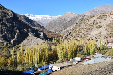 Şırnak’ın Beytüşşebap ilçesinde, sonbahar ile birlikte sararan ağaçlar kartpostallık görüntüler oluşturdu. Yüksek kesimlerin karla kaplı olduğu ilçe renk cümbüşüne döndü.