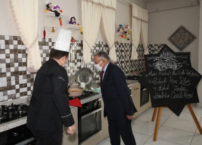 Eğitmenler Behiye Çukurluoğlu ve Mustafa Tosun, ilk menülerinde mavi haşhaşlı köri soslu tavuk, sebzeli pirinç pilavı, kabak tarator ve Hindistan cevizli revani tatlısı ile kursiyerlerin karşısına çıkarken, Kayseri Büyükşehir Belediye Başkanı Dr. Memduh Büyükkılıç, KAYMEK mutfağına ziyarette bulundu.