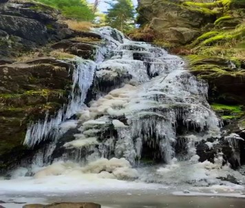Bolu’da, hava sıcaklığının eksi 15 derecelere kadar düştüğü 2 bin rakımlı Köroğlu Dağları’nda Köroğlu Şelalesi ve dereler buz tutması görsel şölen oluşturdu.