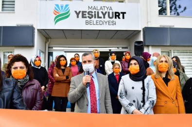 Yeşilyurt Belediye Başkanı Mehmet Çınar, eşi Semra Çınar, AK Parti Yeşilyurt Kadın Kolları Başkanı Esin Tanrıverdi, Yeşilyurt Kent Konseyi Kadın Meclisi Başkanı Semra Özcan ve Yeşilyurt Belediyesinde çalışan kadın personellerle birlikte ‘25 Kasım Kadına Yönelik Şiddete Karşı Uluslararası Mücadele Günü’ nedeniyle Yeşilyurt Belediyesi Hizmet Binası önünde basın açıklamasında bulundu.