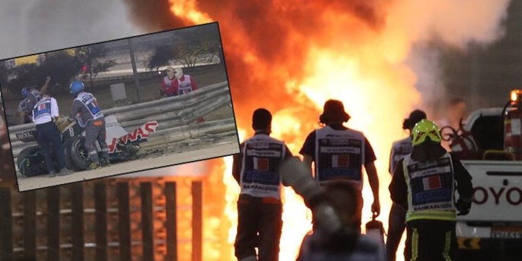 2020 Formula 1 Şampiyonası'nın 15. yarışı olan Bahreyn Grand Prix'inde korkunç bir kaza meydana geldi. Haas F1 takımının pilotu Romain Grosjean'in aracı alev alev yandı. Grosjean hemen hastaneye kaldırıldı. İşte Formula 1 Bahreyn GP'ye damga vuran o anlar ve kaza yerinden ilk görüntüler...