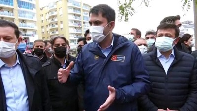 Cumhuriyet Sitesi'ndeki yıkım çalışmalarını inceleyen ve yetkililerden bilgi alan Bakan Kurum, depremzedeleri dinledi, onlara yapılacak çalışmaları anlattı.