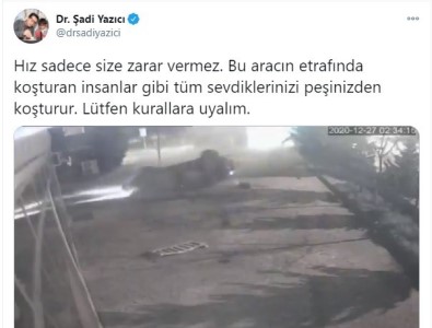 Tuzla Belediye Başkanı Şadi Yazıcı, kazanın görüntülerini Twitter’da paylaşarak, “Hız sadece size zarar vermez. Bu aracın etrafında koşturan insanlar gibi tüm sevdiklerinizi peşinizden koşturur. Lütfen kurallara uyalım” dedi.