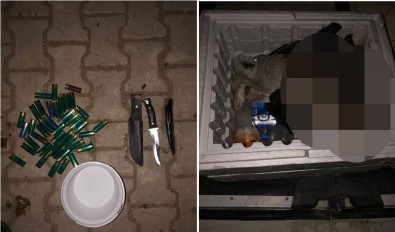 Şahısların avda kullandıkları iki adet av tüfeği, 1 adet ışıldak ve 2 adet ölü bulunan yaban tavşanına ise el konuldu.