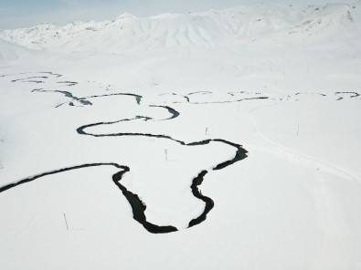 Karların erimesi sonrası suyun akış yönünün değişmesi nedeniyle kilometrelerce uzunlukta menderesler oluştu. Menderesler oluşturduğu doğal güzellik drone ile havadan görüntülendi.
