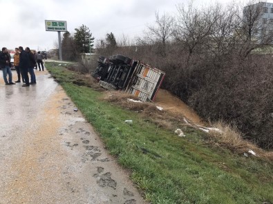 B.B. yönetimindeki 42 EKY 70 plakalı tıra arkadan çarptı. Kazada buğday taşıyan tır devrilirken, kasasındaki yüklü buğday karayolu üzerine ve yol kenarına saçıldı. Tır sürücüsü kazayı yara almadan atlatırken, olay yerine sevk edilen sağlık ekipleri tarafından sürücü sağlık durumu kontrol edildi. Karayolu bir süre araç trafiğine kapanırken, polis ekipleri yol üzerinde güvenlik önlemi aldı. Yapılan çalışmanın ardından yola saçılan buğdayın temizlenmesiyle yol tekrar trafiğe açıldı.