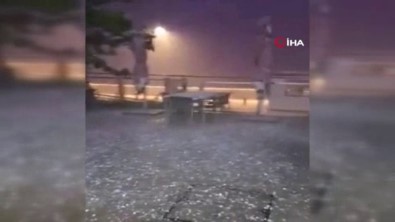 20 dakika boyunca yıldırımlar nedeni ile aydınlandı. Dolunun etkisiyle sokakları aniden sel bastı.