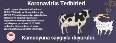 hayvan pazarının kapatılmasına karar verdi. İl Umumi Hıfzıssıhha Kurulunun 18 Mart 2020 tarih ve 06 sayılı kararında, "Vatandaşlarımızı koruma ve salgının yayılmasını engellemek amacıyla insanların toplu olarak bulundukları veya bulunabilecekleri canlı
