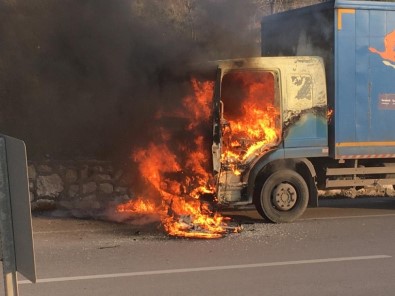 Kargo Kamyonu Seyir Halindeyken Alev Alıp Yandı