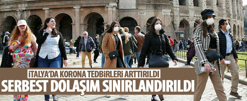 Koronavirüs salgınından dolayı, karantina bölgesinde uygulanan önlemler ülke geneline genişletildi. Ülke tamamen karantina altına alındı. İtalya Başbakanı Conte, yeni kararnameyle ülkede serbest dolaşımı zorunlu haller dışında sınırlandırdıklarını açıkladı. Yeni tip koronavirüse karşı aldıkları önlemleri bütün ülke genelinde uygulayacaklarını söyleyen Conte, halktan evden çıkmamaları çağrısında bulundu.