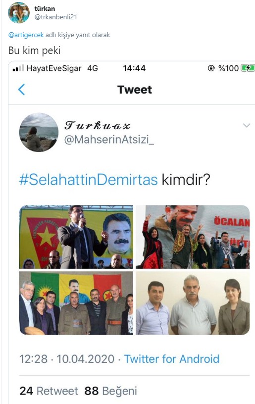 Terör örgütü PKK'nın siyasi uzantısı HDP'nin eski eş Genel Başkanı Selahattin Demirtaş'ın eşi Başak Demirtaş, "Selahattin terörist değil" dedi. Demirtaş'ın açıklamaları sosyal medyada tepki çekti.