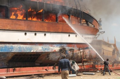 Brothers Five Nordic isimli yolcu katamaranındaki yangın tersane çalışanlarının yangın tüpleriyle müdahalesine rağmen kısa sürede tüm tekneyi sararken, siyah dumanlar Manavgat’ın en ücra köşesinden bile göründü.