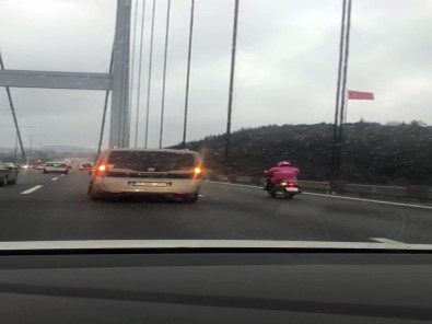 Köprüden Geçen Motosikletli Kuryeye Sürücüler Kalkan Oldu