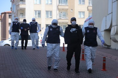 polis ekipleri de, korona virüs tedbirleri kapsamında tulum giydi, eldiven ve maske taktı.