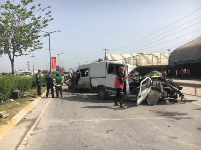 Kaza, Adapazarı ilçesi Sebahattin Zaim Bulvarı Halı sahaların önünde meydana geldi. Edinilen bilgilere göre, Karaman istikametine giden Necdet P., idaresindeki 34 RP 522 plakalı midibüs sürücüsü önüne çıkan kadına çarpmamak için direksiyon kırdı. Yoldan çıkan midibüs karşı istikamete geçti. Bu sırada midibüs Adapazarı istikametine giden Mustafa D., idaresindeki 52 LL 180 plakalı minibüs ile kafa kafaya çarpıştı. Meydana gelen trafik kazasında iki sürücü Mustafa D., ve Necdet P., ile A.B., V.V İ.U., isimli şahıslar yaralandı. Kazayı gören diğer sürücüler hemen sağlık ve itfaiye ekiplerine durumu bildirdi. Olay yerine çok sayıda sağlık ekibi sevk edildi. Olay yerine gelen Sakarya Büyükşehir Belediye Başkanlığına bağlı itfaiye ekipleri araç içinde sıkışanları kurtararak sağlık ekiplerine teslim etti. Yaralılar olay yerindeki ilk müdahalenin ardından çevredeki hastanelere kaldırılırken, araçlar kullanılmaz hale geldi.