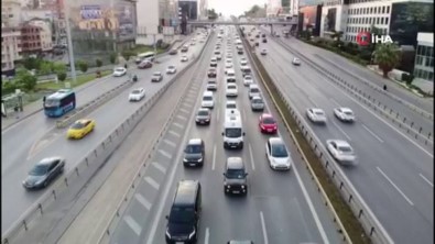 Korona virüsle mücadele kapsamında hafta sonu için uygulanacak sokağa çıkma kısıtlaması öncesi bazı vatandaşlar yollara çıktı. İş çıkış saatinin de denk gelmesiyle E-5’te uzun trafik yoğunluğu oluştu. Kısıtlama öncesi de İstanbul’dan çıkış yapmak için yollara düşen vatandaşlar trafiği durma noktasına getirdi. E-5 Ankara istikametinde trafik durma noktasına gelirken E-5 Kadıköy istikameti boş kaldı. Oluşan trafik yoğunluğu drone ile havadan görüntülendi.