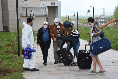 Karantinadan çıkan vatandaşlar, memleketlerine gitmenin sevinci ile yurt bahçesinde kurban da kestiler. Sosyal mesafe kuralına dikkat ederek yurttan çıkan vatandaşlar, dezenfekte edilen otobüslerle memleketlerine uğurlandı.