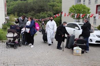 Karantina süreci biten vatandaşlar araçlara bindirilerek alkışlarla memleketlerine uğurlandı.