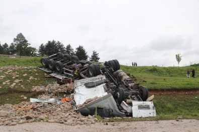 Bolu'da, Karşı Şeride Geçen Tır 50 Metrelik Şarampole Yuvarlandı