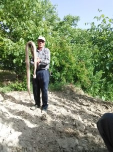 Adıyaman’ın Gölbaşı ilçesinde bir bahçede görülen 2,5 metre uzunluğundaki yılan, bahçe sahibi tarafından etkisiz hale getirildi.