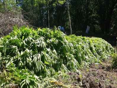 Samsun’un İlkadım İlçesi Gürgendağ Mahallesi’nde 31 Mayıs Pazar günü Samsun İl Jandarma Komutanlığı Kaçakçılık ve Organize Suçlarla Mücadele Şube Müdürlüğü ve İlkadım İlçe Jandarma Komutanlığı ekiplerince yapılan teknik ve istihbari çalışmalar sonucu şüpheli 4 şahsın ev ve eklentileri ile ormanlık alanda Samsun Cumhuriyet Başsavcılığından alınan arama kararına istinaden yapılan arama neticesinde 105 bin kök kenevir bitkisi, 4 adet ruhsatsız av tüfeği, 3 adet ruhsatsız tabanca ile 1 adet 2521 sayılı Kanun kapsamında bıçak ele geçirildi. İcra edilen arama faaliyetlerinin devamında ve elde edilen bilgiler doğrultusunda arama-tarama faaliyeti geliştirilerek bölge kontrol edildiğinde 18 kilogram kurumaya bırakılmış kubar esrar maddesi de elde edildi.