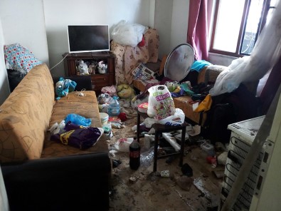 Evden 3 kamyon dolusu çöp çıkarken, evin boşaltılmasıyla beraber ilaçlama işlemi yapıldı. Komşulardan edinilen bilgilere göre 65 yaşındaki kadının 2 sene boyunca öyle yaşadığı ve ruhsal problemleri olduğu öğrenildi.