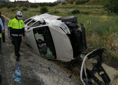 Gölbaşı'nda Hafif Ticari Araç Şarampole Devrildi