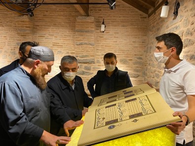 Hat sanatını öğretmek için her hafta Anadolu’yu gezen Hattat Mahmut Şahin, takip ettiği cami ve müze projelerini de sokağa çıkma kısıtlaması sebebiyle aksamaması için, çalışmaları yerlerinde kontrol etti.