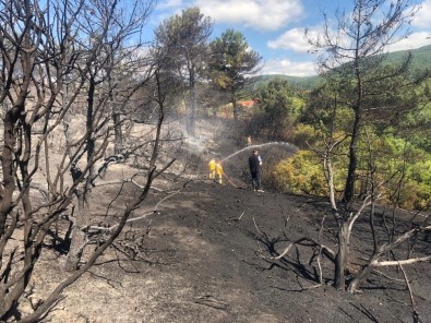 5 dönüm orman arazisinin zarar gördüğü yangın müdahalesine; 2 helikopter, 5 arazöz, 1 dozer, 2 belediye itfaiye aracı, 1 trayler ve toplam 30 personel katıldı.