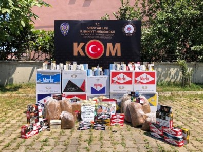 Ordu İl Emniyet Müdürlüğü ekiplerince bir iş yerine yapılan arama çalışmaları neticesinde, piyasa değerleri 45 bin TL olan kaçak sigara ile çeşitli ekipmanlar ele geçirildi.