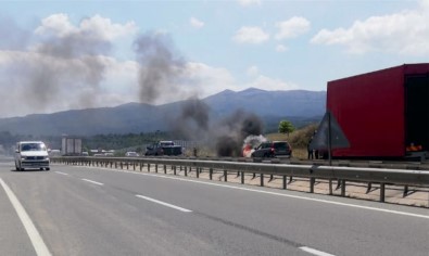 Sürücüsünün ana yolda emniyet şeridine çekerek eşi ile birlikte indiği araç birden alev aldı. Yoldan geçen araçlardaki yangın tüpleri ile müdahale edilen otomobile olay yerine çağrılan itfaiye ekipleri de müdahale ederek, araçtaki yangını söndürdü. Yanan otomobil kullanılamaz hale gelirken, jandarma ve itfaiye ekipleri olayla ilgili soruşturma başlattı.