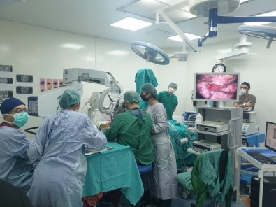 Gür, "57 yaşında bayan hasta, işitme kaybı ile başvurdu. Beyincik köşesine yerleşmiş sinir kılıfı tümöründen bahsediyoruz. Daha uzun bir cerrahi sürede farklı bir yaklaşım ile yüz kaslarına hükmeden sinirin korunmasını amaçladığımız bir cerrahiden bahsediyoruz. Bu planlamayı birlikte yaptık. Anestezi ve radyolojiden arkadaşların da katkılarıyla fasiyal siniri koruduk. Bu bir ilk değil takdir edersiniz ama biz burada BEÜ’de bunu yapabiliyor olmaktan mutluyuz" dedi.