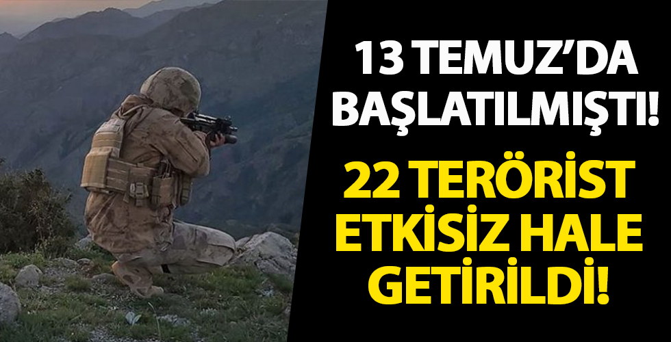 Terör belasını ülke gündeminden çıkarmak, harekat kabiliyeti daralan terörist grupları etkisiz hale getirmek ve teröristlerin sözde barınma alanları arası geçişlerini engelleyerek takviye edilmelerini önlemek amacıyla düzenlen operasyonlarda şu ana kadar 22 terörist etkisiz hale getirilirken 31 mağara imha edildi.