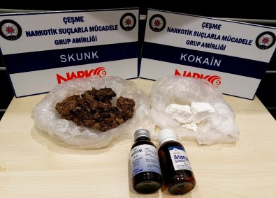 Çeşme Narkotik Suçlarla Mücadele Grup Amirliği (NARKO) ekiplerinin, Çeşme’de uyuşturucu ticareti yapmak suçu şüphesiyle yakaladığı H.G., tutuklanarak cezaevine gönderildi. H.G.’nin üzerinde arama yapan ekipler, toplam değeri 60 bin lira olan 55 gram kokain ve 25 gram esrar maddesi ele geçirdi.