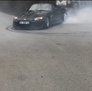 Hem kendi hem de diğer sürücülerin canını tehlikeye atan magandalar, şov uğruna yapmadığını bırakmadı. Ortalığı dumana boğan magandalar, kendi etrafında dönerek kuralları hiçe saydı. Magandalar o anları kaydettirip, bir de sosyal medyada yayınladı.