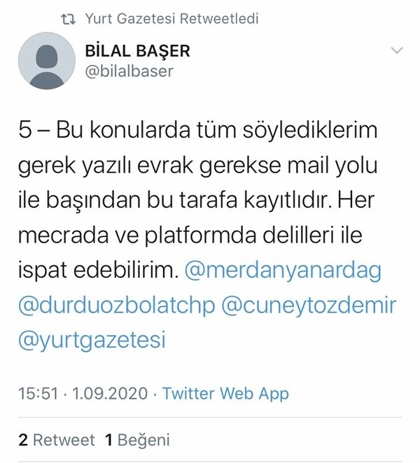 'Bu konularda tüm söylediklerim gerek yazılı evrak gerekse mail yolu ile başından bu tarafa kayıtlıdır. Her mecrada ve platformda delilleri ile ispat edebilirim.'