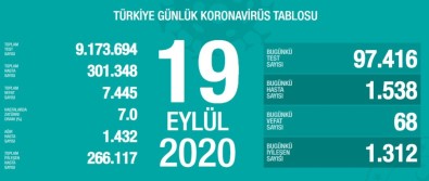 Sağlık Bakanlığı, son 24 saatte 68 kişinin korona virüsten hayatını kaybettiğini, bugün bin 538 yeni vaka tanısı konulduğunu açıkladı.
