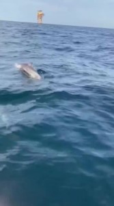 Yaklaşık 15 dakika su yüzeyinde ilerleyen yunuslar, zaman zaman akrobatik hareketler yaptıkları görüldü.