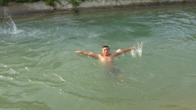 Sıcaklardan Bunalan Çocuklar Sulama Kanalına Atladı