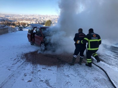 Kısa sürede söndürülen yangında araçta maddi hasar meydana geldi.