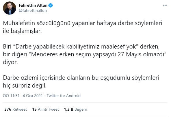 Fahrettin Altun'dan darbe heveslilerine tokat gibi yanıt!