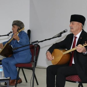 Öte yandan program sonunda Baskan Tekin, halk ozanlarina tesekkür ederek ilçeye ait topraktan kahve fincan seti hediye etti.