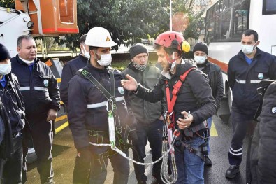 Osmangazi Belediyesi personeline is güvenligi uzmanlari tarafindan yüksekte güvenli çalisma egitimi verildi.
