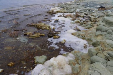 Burdur Gölü'nün bazı kıyı kesimlerinde yer yer görülen köpüklenme dikkati çekiyor.