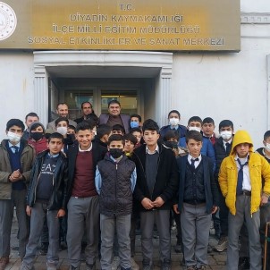 Diyadin Kaymakami ve Diyadin Belediye Baskan Vekili Alper Balci ögrencilerle Diyadin Belediyesi Gençlik, Kültür ve Sanat Merkezindeki cep sinemasinda film izledi.