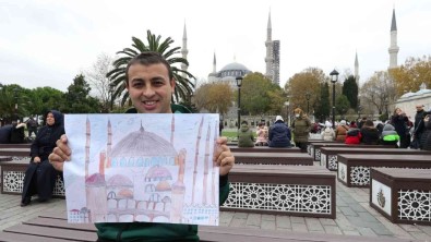 Çocuklugundan bu yana cami resimleri çizerek büyüyen isitme kaybi ve konusma bozuklugu olan 23 yasindaki Ibrahim Büyükyasar, en büyük hayali olan Sultan Ahmet ve Ayasofya Camilerini gezdi.